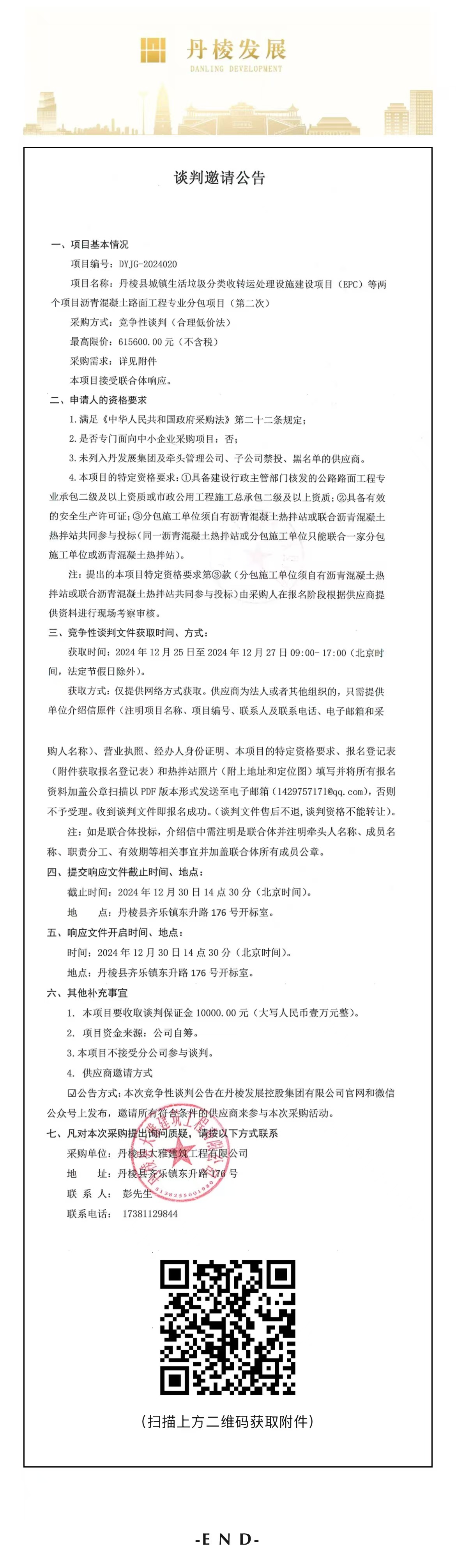 丹棱縣城鎮(zhèn)生活垃圾分類收轉(zhuǎn)運(yùn)處理設(shè)施建設(shè)項(xiàng)目(EPC)等兩個(gè)項(xiàng)目瀝青混凝土路面工程專業(yè)分包項(xiàng)目(第二次)談判邀請公告
