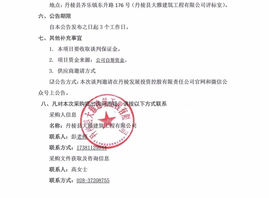 丹棱縣熊河碥片區(qū)市政基礎(chǔ)設(shè)施建設(shè)一期(城市雙修)設(shè)計(jì)施工總承包(EPC)聲光、亮化工程專業(yè)分包項(xiàng)目談判邀請(qǐng)公告