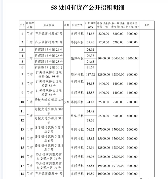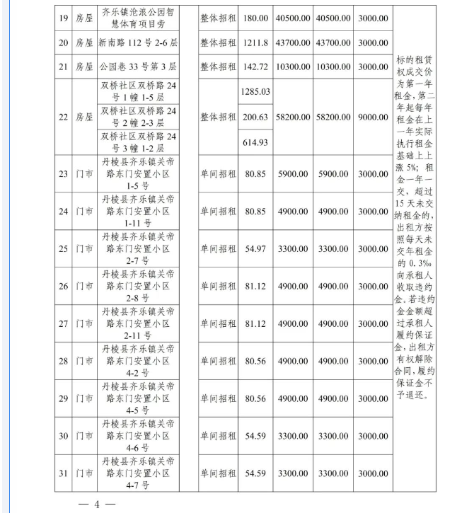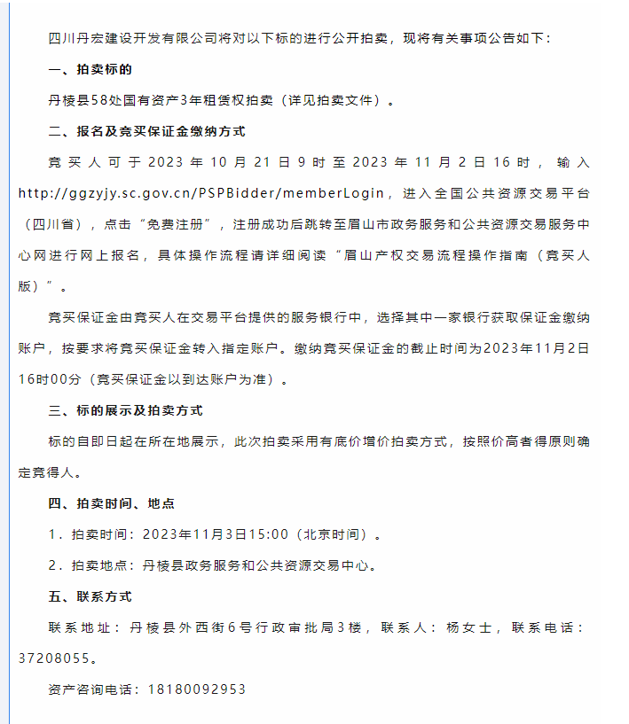 丹棱縣58處國有資產(chǎn)3年租賃權拍賣公告