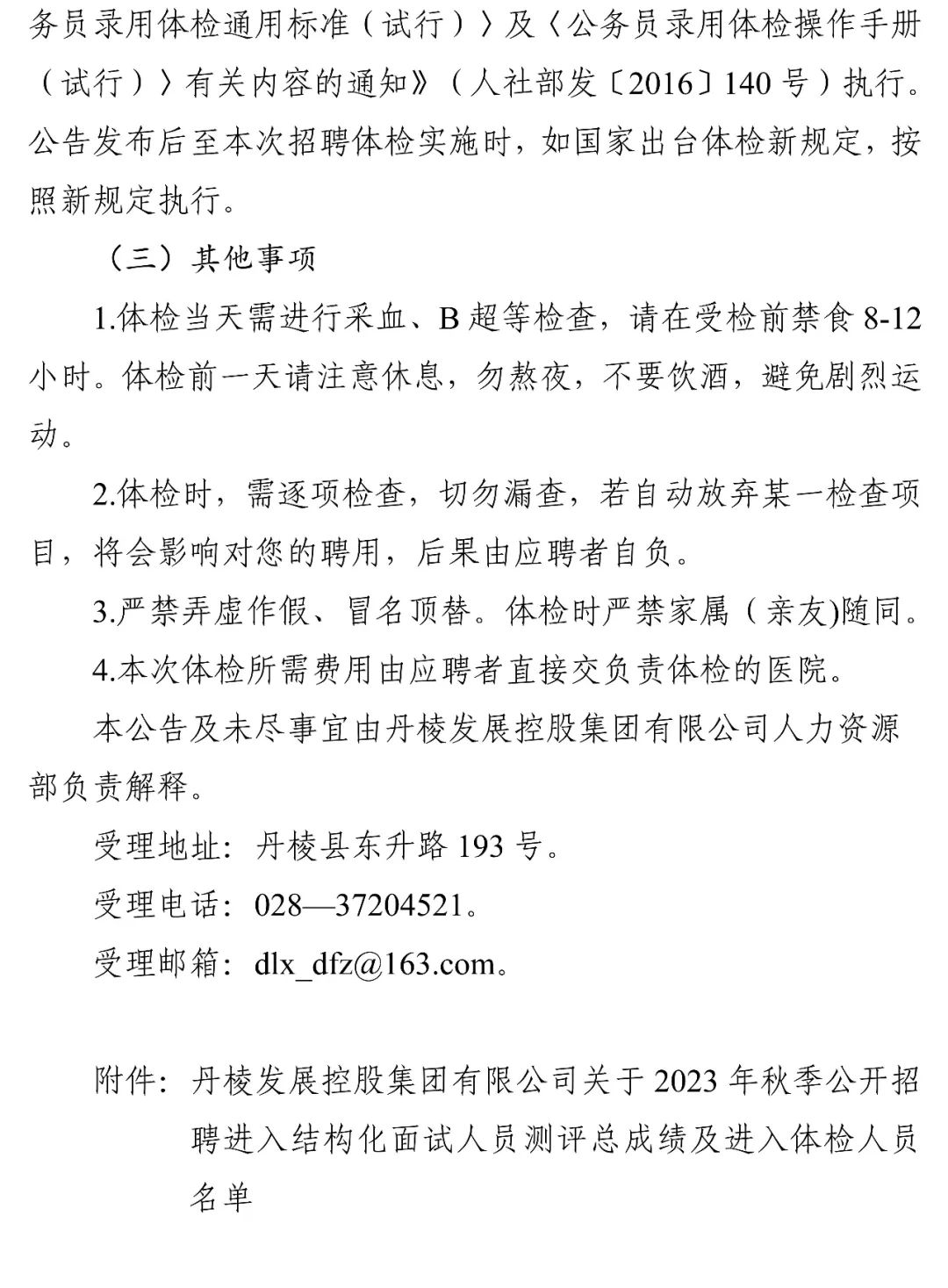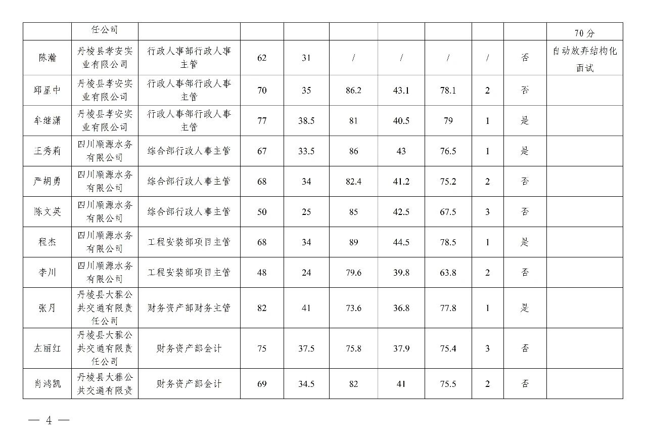 丹棱發(fā)展控股集團有限公司關于2023年秋季公開招聘進入結構化面試人員測評總成績及進入體檢人員的公告