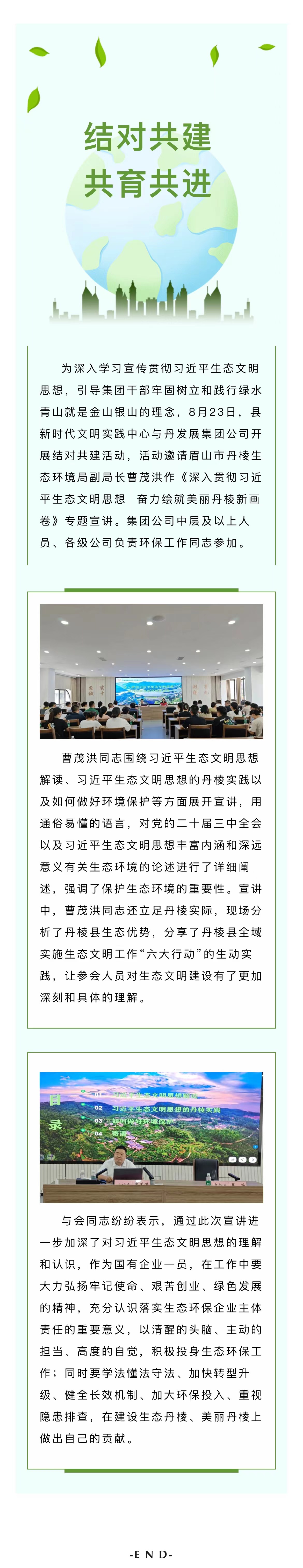 結(jié)對共建,共育共進(jìn)|縣新時代文明實(shí)踐中心與丹發(fā)展集團(tuán)公司舉辦習(xí)近平生態(tài)文明思想專題宣講活動