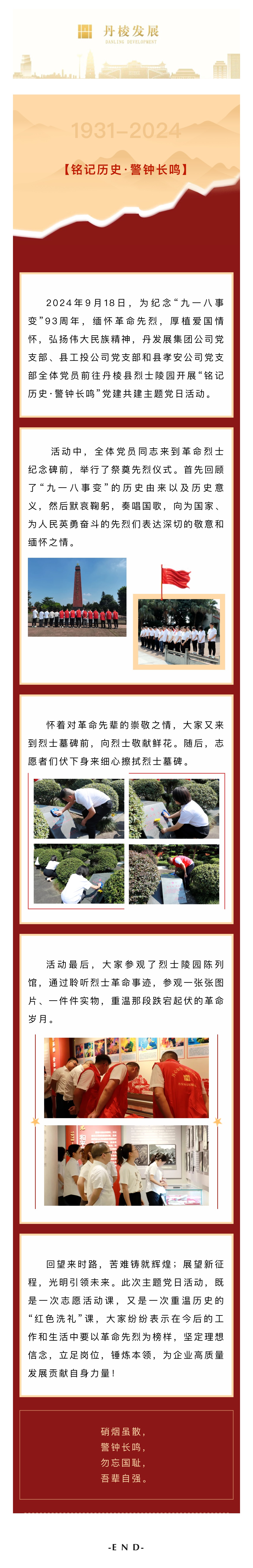 結(jié)對(duì)共建,共育共進(jìn)|丹發(fā)展集團(tuán)公司黨支部開(kāi)展開(kāi)展“銘記歷史·警鐘長(zhǎng)鳴”黨建共建主題黨日活動(dòng)