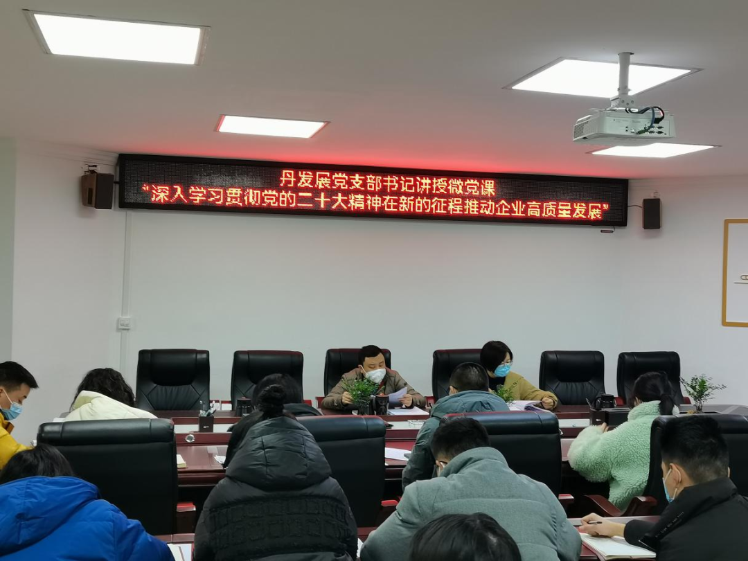按照縣委《關(guān)于認真學(xué)習(xí)宣傳貫徹黨的二十大精神的通知》相關(guān)要求,12月16日,丹發(fā)展黨支部召開黨員(擴大)會議,由支部書記講黨課,學(xué)習(xí)貫徹黨的二十大精神。丹發(fā)展公司全體黨員及員工參加。